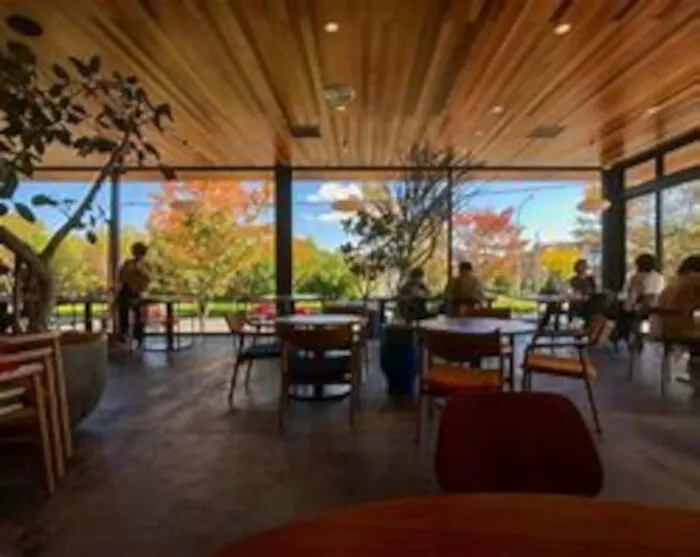 豊富な書籍と緑豊かな環境に囲まれた、くつろぎのカフェです。自由に本を手に取って読むことができ、ベビーカーも入れる広々とした空間で、子連れの方も安心して利用できます。
